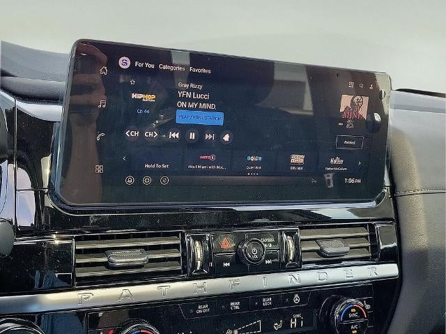 - Radio: AM/FM Audio System w/NissanConnect -inc: 6 speakers, 5G Wi-Fi hotspot, wireless Apple CarPlay and Android Auto, 12.3" multi-function information display, SiriusXM satellite radio, 2 front USB connection (1 type C charge and data ports), Bluetooth® hands-free phone system, streaming audio and messaging and hands-free text messaging assistant