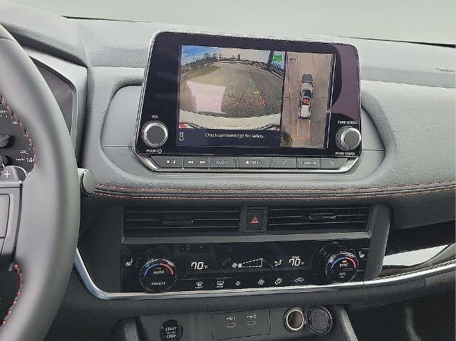 4-Wheel Disc Brakes, 6 Speakers, ABS brakes, Air Conditioning, Alloy wheels, AM/FM radio, Apple CarPlay/Android Auto, Auto High-beam Headlights, Automatic temperature control, Black Splash Guards (set of 4), Brake assist, Delay-off headlights, Driver door bin, Driver vanity mirror, Dual front impact airbags, Dual front side impact airbags, Electronic Stability Control, Emergency communication system: NissanConnect Services, Four wheel independent suspension, Frameless Rearview Mirror with Universal Remote, Front anti-roll bar, Front Bucket Seats, Front Center Armrest, Front dual zone A/C, Front reading lights, Fully automatic headlights, Heated door mirrors, Heated Front Bucket Seats, Heated front seats, Illuminated entry, Knee airbag, Leatherette and Ballistic Nylon Seating, Low tire pressure warning, Occupant sensing airbag, Outside temperature display, Overhead airbag, Overhead console, Panic alarm, Passenger door bin, Passenger vanity mirror, Power door mirrors, Power driver seat, Power Liftgate, Power steering, Power windows, Premium Paint, Radio data system, Radio: AM/FM NissanConnect, Rear anti-roll bar, Rear Parking Sensors, Rear seat center armrest, Rear side impact airbag, Rear window defroster, Rear window wiper, Remote keyless entry, Roof rack, Speed control, Speed-sensing steering, Speed-Sensitive Wipers, Split folding rear seat, Spoiler, Steering wheel mounted audio controls, Tachometer, Telescoping steering wheel, Tilt steering wheel, Traction control, Trip computer, Variably intermittent wipers, and Wheels: 17" Dark Painted Alloy.